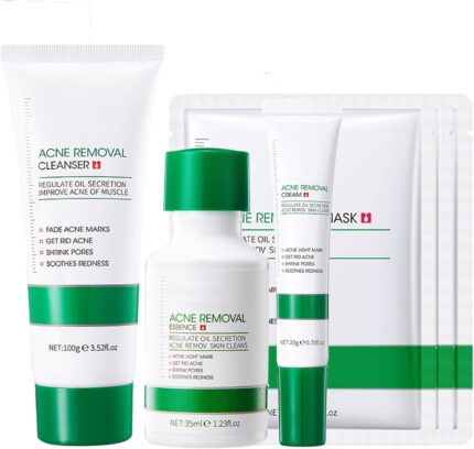 Azonee Women’s Skin Care Gift Set, Anti-Acne Skin Care Set, Cleansing Skin Care Set, Including Cleanser, Essence, Cream, Mask, Remove Facial Acne, Moisturize, Shrink Pores, Soothe Redness, Swelling