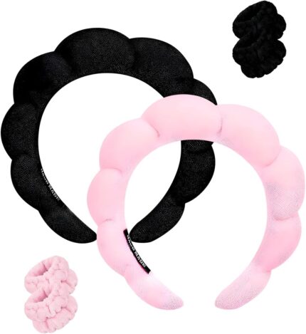 Xspring Spa Headband and Wristband Set, 2 PCS Bubble Skincare Headband and Wristband Combo, Makeup Headband Set for Face Washing, Mask Application and Skin Treatment