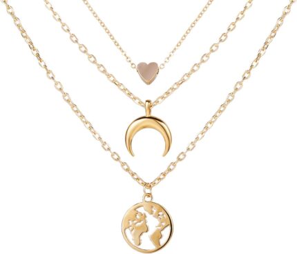 Aimimier Bohemia Layered Choker Necklace Heart Necklace Disc Choker Gold Heart Disc Pendant Necklace Multilayer Station Chain for Women and Girls
