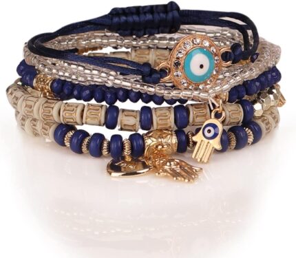 Shining Diva Fashion Latest Stylish Evil Eye Multilayer Bangle Beads Bracelet for Women and Girls (14683b)(Navy Blue)