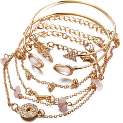 Shining Diva Fashion Set Of 4 Stylish Multilayer Crystal Bangle Charm Bracelet for Women (Golden) (rrsd10711b), One Size