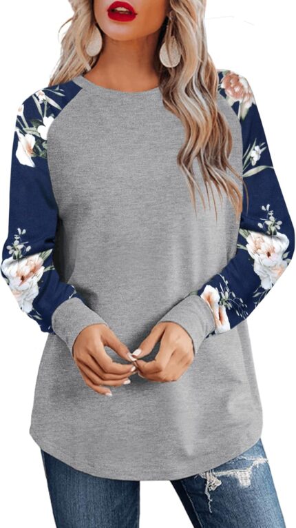Aokosor Womens 3/4 Sleeve Tops Ladies Blouses Crew Neck Puff Sleeve Tunic Fashion T Shirt Button Sleeve