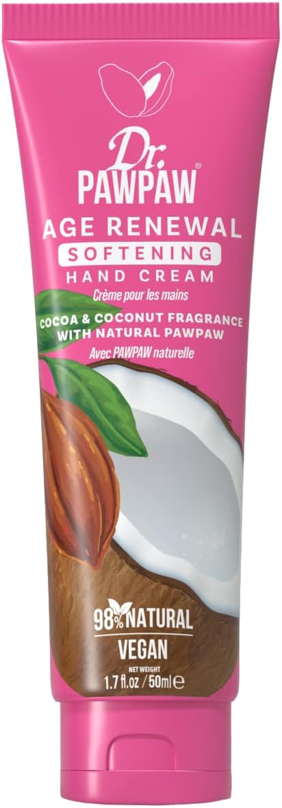 Dr.PAWPAW Age Renewal Softening- Cocoa & Coconut Hand Cream for Hands, Nails & Cuticles, Multitasking Softening, Nourishing, Vegan and Cruelty Free (50 ml)