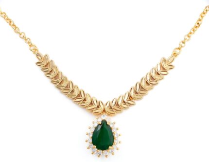 Mingee Women’s green teadrop Leaf design Necklace in Brass – 18K Gold Plated & Oxidized Design for Banquet & Special Occasions – Elegant Luxury Jewelry with Gift Box