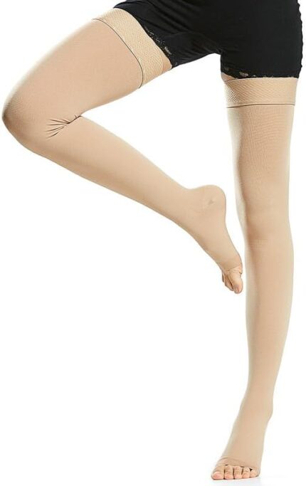 Beister Compression Stocking 20-30 mmHg for Women & Men, 1 Pair Open Toe Thigh High Compression Socks with Silicone Band Gives Graduated Support for Travel, Flight, Running