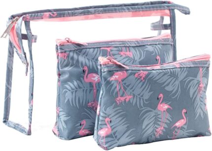 QTL Waterproof Flamingo Cosmetic Bag Set Toiletry Storage Organizer for Women Girls(Grey)