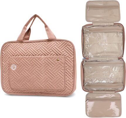 URBAN SOMBRERO Pink Marine Travel Hanging Toiletry Bag for Women and Men, Luxury Cosmetics and Makeup Organizer with Full-Size Pockets, Waterproof Exterior, Hands-Free Hook,, Pink, Medium, Modern