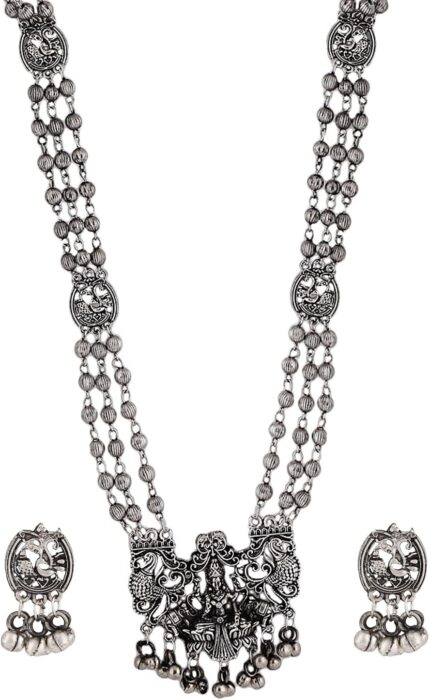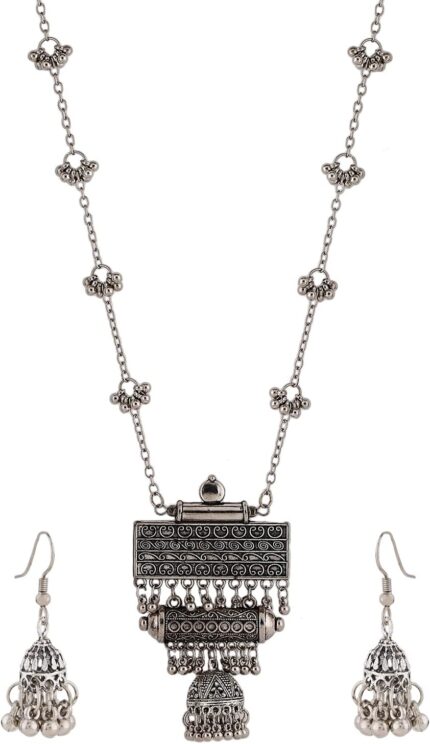 Shining Diva Fashion Latest Stylish Traditional Oxidised Silver Necklace Jewellery Set for Women (13137s), One Size