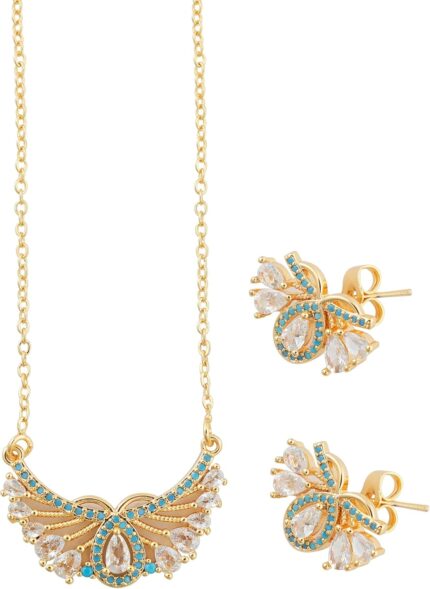 Mingee Women’s Fan Design Jewelry Set with Necklace & Earrings – Brass Base, 18K Gold Plated & Oxidized Style, Adjustable Chain for Daily Wear, Parties & Anniversary Gifts