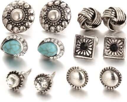 Shining Diva Fashion Jewellery Oxidized Silver Stylish Fancy Studs Traditional Earrings For Women Girls Combo(Silver)(cmb277)