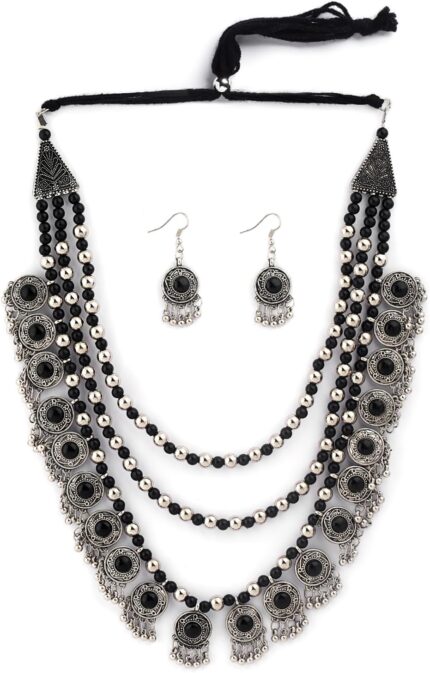 Shining Diva Fashion Latest Stylish Fancy Oxidized Traditional Oxidised Necklace Jewellery Set for Women (Black) (rrsd13121s)
