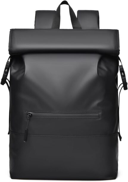 Laptop Backpack for 15.6 Inch Laptop & iPad – Water Resistant Roll-Top Design with Padded Compartment, Anti-Scratch, Front & Back Zipper Pockets, Breathable Straps for Men Women