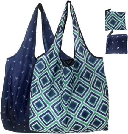 Elios Designer Pattern Reusable and Foldable Shopping Bag/Tote Hand Bag/Travel Bag/Grocery Bag | Heavy Duty, Eco Friendly | Compact, Lightweight and Convenient (Pack of 2 (D))