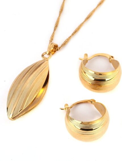 Azonee Gold Jewelry Set, Dubai Gold Necklace Set with Pendant African Nigerian 24K Jewelry Set Earrings and Bracelets Bridal Indian Fashion for Wedding