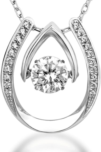 ARINZA Silver Necklace for Women, Dancing Diamond Cubic Zirconia, Horseshoe Pendant with 18+2 Inch Chain, Anniversary Birthday Valentines Gifts for Her, Women, Wife, Mom, Girlfriend, Lady