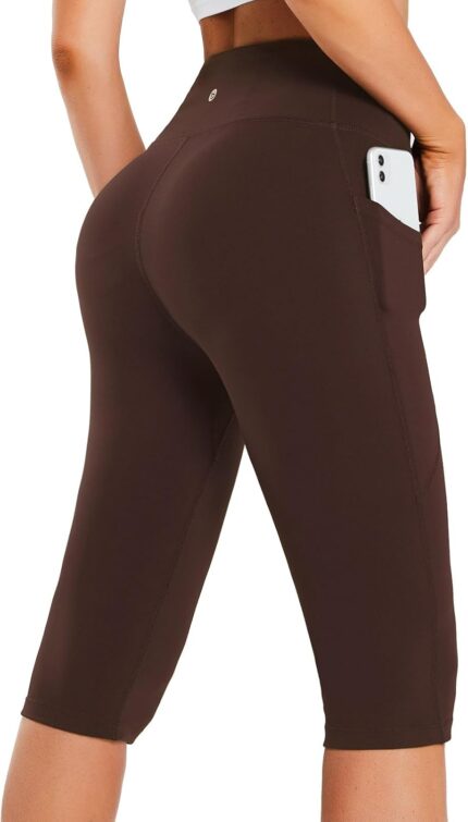 BALEAF Women’s Capris with Pockets Knee Length Capri Leggings High Waisted Stretch for Casual Summer Yoga Workout Exercise