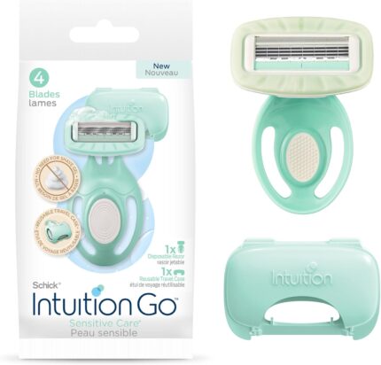 INTUITION Schick Go Disposable Travel Razor for Sensitive Skin, 1 Count | Women’s Disposable Razors with Organic Aloe, Travel Razors for Women, Travel Essentials, Stocking Stuffers for Women