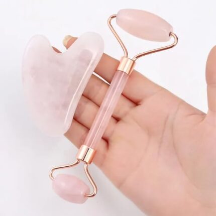BAIMEI Jade Roller & Gua Sha, Face Roller, Facial Beauty Roller Skin Care Tools, BAIMEI Rose Quartz Massager for Face, Eyes, Neck, Body Muscle Relaxing and Relieve Fine Lines and Wrinkles