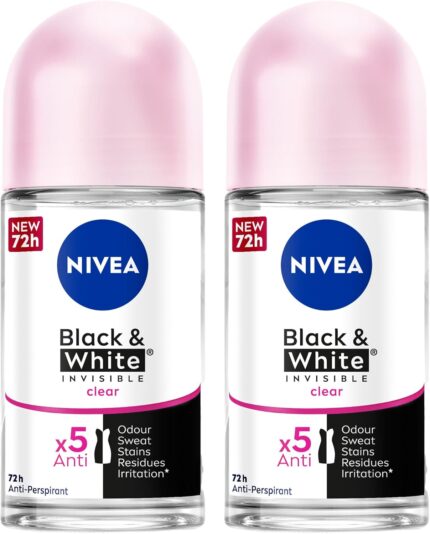 NIVEA Antiperspirant Roll-on for Women, Black & White Invisible Protection Original, 2x50ml