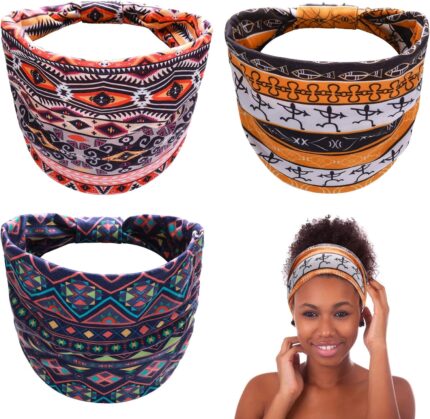 NALACAL Boho Headbands for Women Girls, 3 Pieces Elastic Head Wraps Boho Hair Bands Breathable Wide Knot Hair Scarf Fashion Hair Accessories for Sport Workout Running