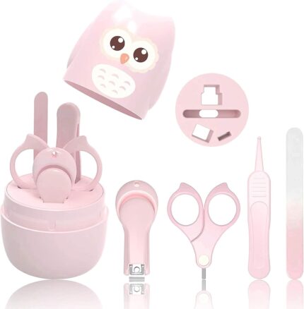 DELFINO Baby Nail Clippers Kit, 4-in-1 Baby Grooming Kit with Cute owl Case, Baby Nail Clippers, Scissor, Nail File & Tweezer Baby Manicure Kit and Pedicure kit for Newborn, Infant & Toddler