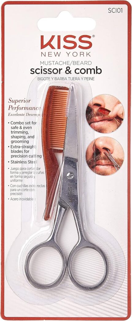 DELFINO Beard Trimming Scissors Set, Grooming Scissors for Men and Mustache Beard Comb Beard Grooming Trim Scissor Kit with Storage Bag