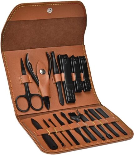 Manicure Set, Professional Stainless Steel Pedicure Nail Clipper Tools Kit with PU Leather Folding Case,Women Men Nail Scissors Nail Cutter Set,16 In 1 Travel Grooming Care Tool Kits