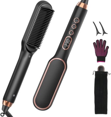 Oxsaytee Hair Straightener Brush, Electric Hair Straightener Comb, Fast Heating & 5 Temp Settings, 3 in 1 Electric Comb Anti-Scald, Hair Straight Styling Tools, Gifts for Women, Black