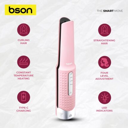 Bson Lock Hair Styler 2-in-1 Wireless Hair Straightener and Curler – 4 Heat Settings, LED Indicators, Type-C Charging, Compact Styling Tool with Safety Lock for Travel and Home Use
