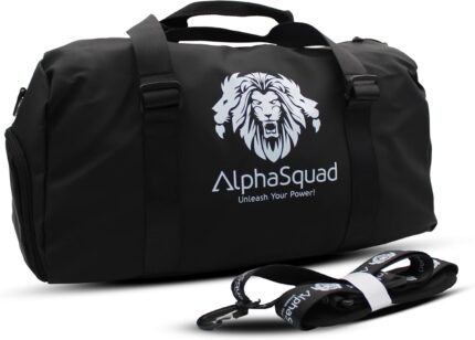 AlphaSquad Sports Bag with Shoes Compartment, Gym Bag with Waterproof Pocket for Towels, Travel Duffel Bag for Men and Women, Black