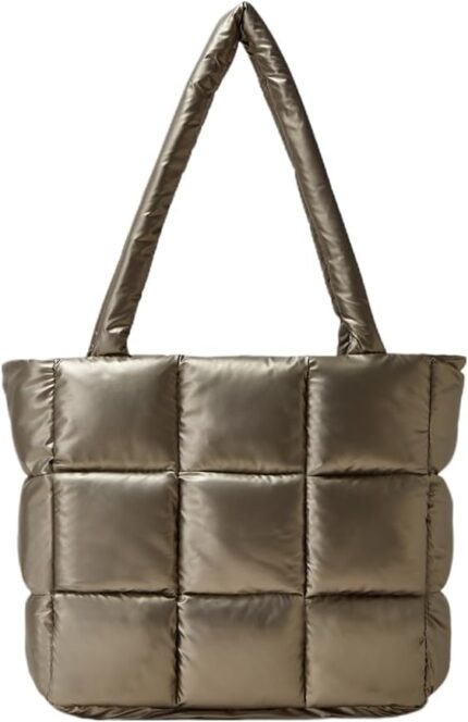 Women Padded Shoulder Bag Lightweight Puffy Satchel Bag Large Capacity Soft Tote Winter Shopper Bag