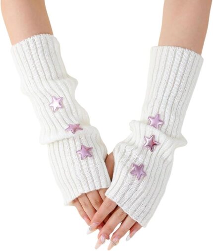 Goodern Arm Warmers,Knit Cute Y2k Long Sleeve Fingerless Gloves,Cold Weather Fashion Arm Sleeve Thumb Hole Gloves,for Women Girls Fall Winter Arm Sleeves Hip Hop Accessories