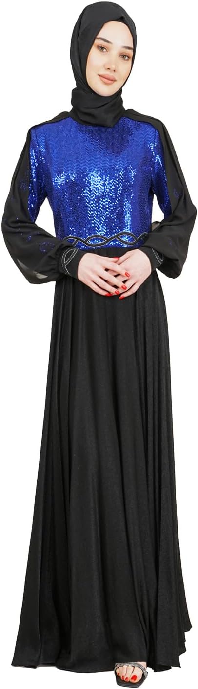 LAMORA Stylish Sequined Yoke Long Maxi Women’s Party Dresses with Hijab and Sequined Laced Long Sleeves | Wedding, Evening or any Special Occasion Dress for Women
