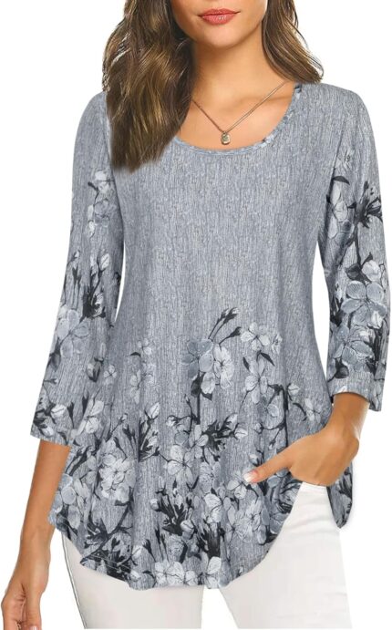 Nandashe Womens 3/4 Sleeves Floral Tunic Shirts Summer Casual Dressy Blouse Tops