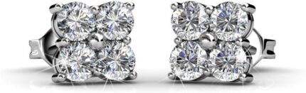 Cate & Chloe Rae Brilliance 18k White Gold Cluster Stud Earrings with Crystals, Round Diamond Cut Stone Earring Set, Wedding Sparkling Silver Studs for Women – Hypoallergenic