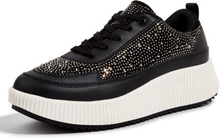 LUCKY STEP Women’s Platform Sneakers Rhinestone Fashion Chunky Casual Sparkly Retro Braided Walking Shoes(Black Rhinestone, 38 EU)