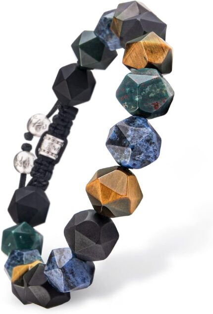 AWNL Men’s Multicolored Beaded Bracelet for Men Natural Stones Tiger Eye Onyx Amethyst Silver Obsidian (10mm) Braided Spiritual Bracelet with Sterling Silver Closure Gift for Men, 6.1”-7.5”