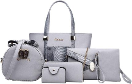 Rullar Women 6 Pcs Bag Set Stitching Handbag and Purse PU Top-handle Bag Tote Clutch Wallet Card Holder