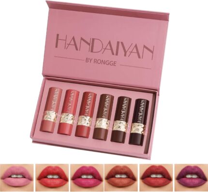 HANDAIYAN Lipstick Set Matte 6 Colors Long Lasting Waterproof for Women Highly Pigment Velvety Nude Super Stay Soft Hydrating & Lightweight Professional Moisturizing Silky Texture Makeup Lips Gift