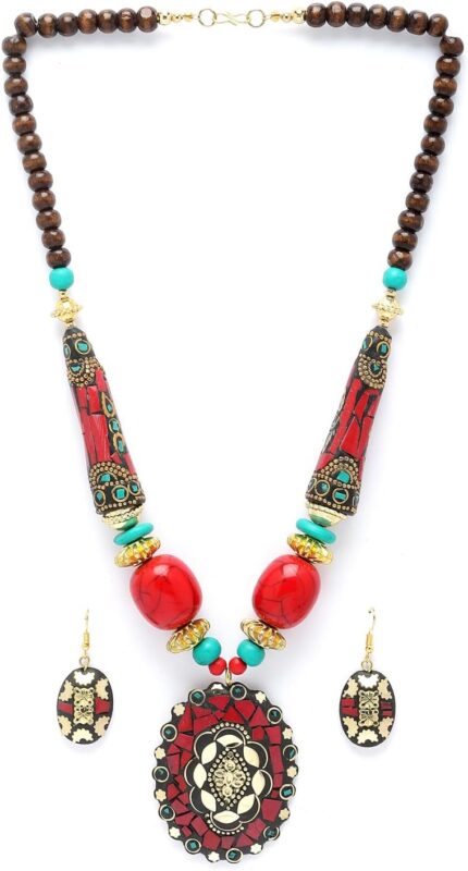 Shining Diva Fashion Latest Stylish Traditional Tibetan Pendant Necklace Jewellery Set for Women