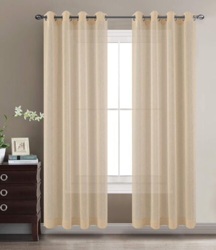 TEXPLUS 2 Panels Grommet Top Solid Color Faux Linen Sheer Curtain Panels with Tie Backs (Mellow Yellow, 2×52 Wx84 L)