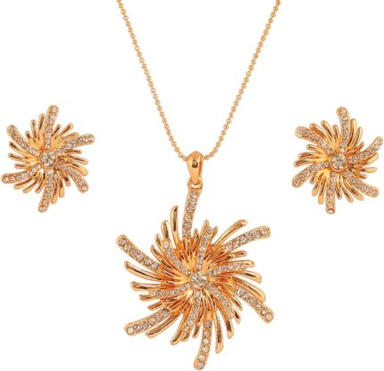 Touchstone Indian Bollywood delicate Creative Designer Jewelry Pendant Set In Gold And Silver Tone For Women.