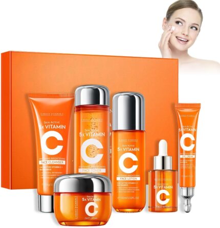 LBOYLOVE® Vitamin C Hautpflege Skincare Set, 6-In-1 Skincare Gift Set With Facial Cleanser, Toner, Eye Cream, Serum, Lotion & Face Cream, Moisturizing Face Skin Care Kit for Anti-Aging, Anti-Wrinkle