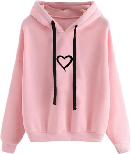 Women Heart Graphic Print Long Sleeve Hooded Sweatshirt Pullover Tops