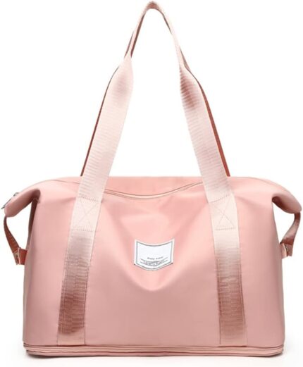 ORiTi Expandable Travel Duffel Bag, Sports Tote Gym Bag, Shoulder Weekender Overnight Bag with Trolley Sleeve for Women Pink