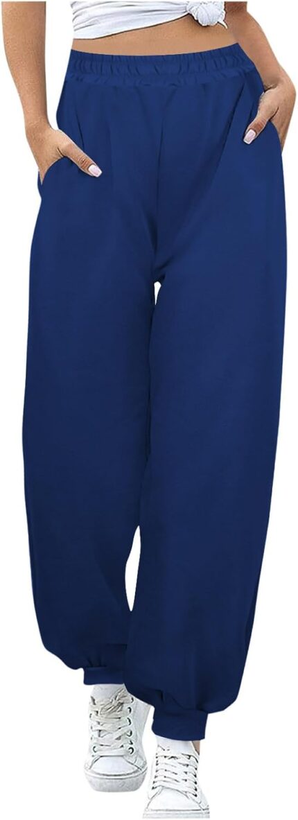 Sczwkhg Women’s Sweatpants with Pockets 2024 High Waisted Workout Athletic Joggers Pants Casual Drawstring Elastic Trousers