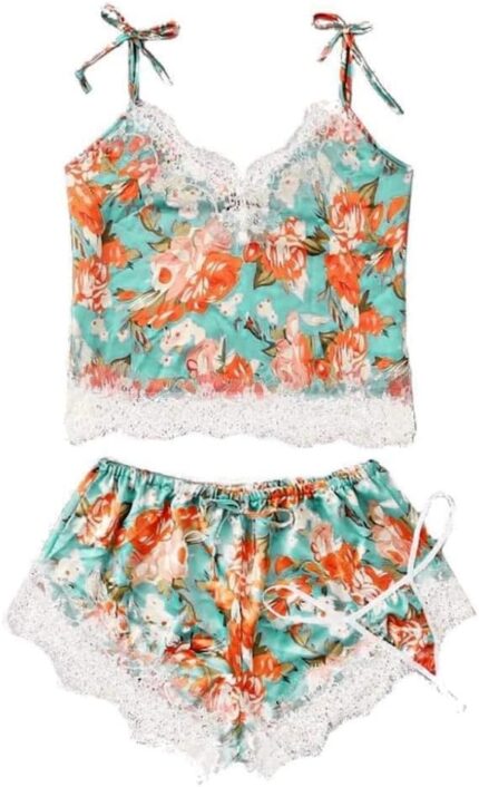 MARGOUN Womens Babydol Pajama Set Sexy Lingerie Satin Sling Sleepwear Lace Bowknot Solid Sleeveless Knot Sling Sleepwear with Underwear Honeymoon Y109