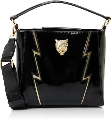 PLEIN SPORT Unisex Medium Tote Heidi Handbag, Black-Gold