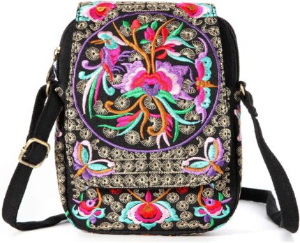 Goodhan Vintage Crossbody Bag Flower Embroidered Cellphone Purse Small Handbag Coin Purse, Bigger Version