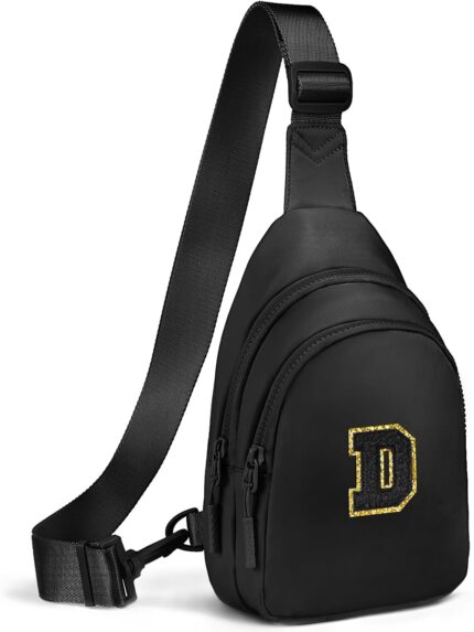Viverte Small Initial Sling Bag for Girls & Women – Cute Crossbody Fanny Pack Gift, Black, D